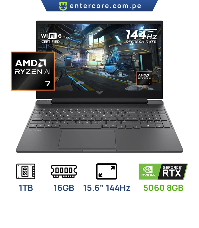 LAPTOP HP VICTUS 15-FB3001NR AMD RYZEN AI 7 – 350, 16GB RAM,1TB SSD PANTALLA: 15.6″FHD (1920X1920) FHD 144Hz GEFORCE RTX 5060 8GB,WIN11