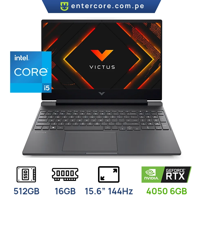 LAPTOP HP VICTUS GAMING 15-FB2002LA AMD RYZEN 5 8645HS, 8GB DDR5, SSD 512GB M.2, VIDEO NVIDIA RTX3050 6GB 144HZ FHD 15.6 TECLADO RETROILUMINADO