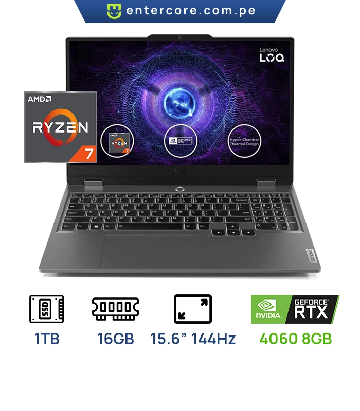 LAPTOP LENOVO LOQ 15AHP9 GAMING AMD Ryzen™ 7 8845HS 1TB SSD 16GB 15.6″ (1920×10808) IPS WIN11 NVIDIA® RTX 4060 8192MB LUNA GREY Backlit Keyboard