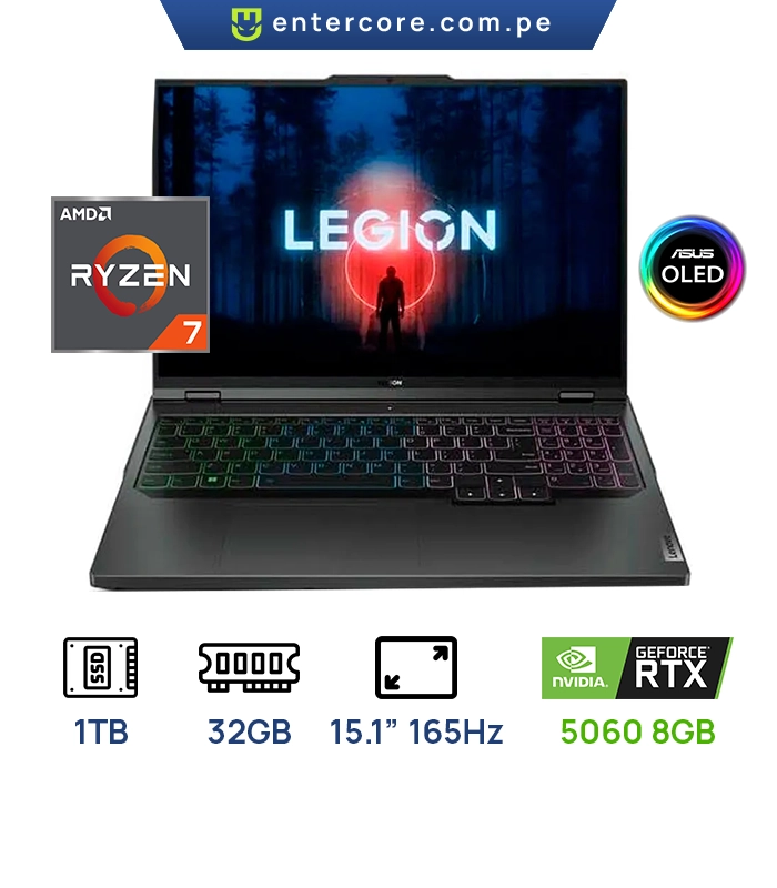 LAPTOP LENOVO LEGION PRO 5 16ADR10 83LT000EUS AMD RYZEN 98945HX 16GB,1TB SSD PANTALLA: 16” WQXGA OLED2560X1600 240Hz NVIDIA GEFORCE RTX 5060 8GB TECLADO RGB ILUMINADO WINDOWS11 HOME