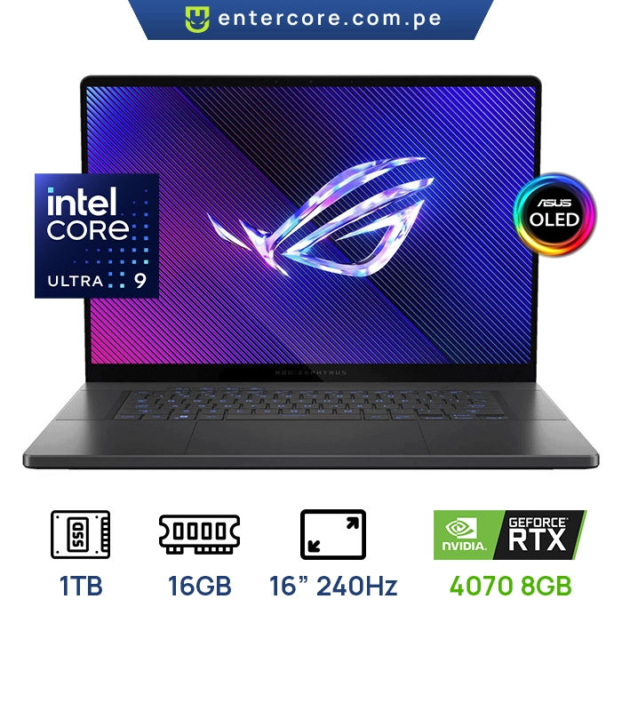 LAPTOP ASUS ROG ZEPHYRUS G16 GU605M-G16.U94070 INTEL CORE ULTRA 9 185H 1TB SSD 16GB RAM DDR5 (2560×1600) WQXGA OLED 240HZ NVIDIA® RTX4070 8GB WIN 11 GRAY Backlit Keyboard