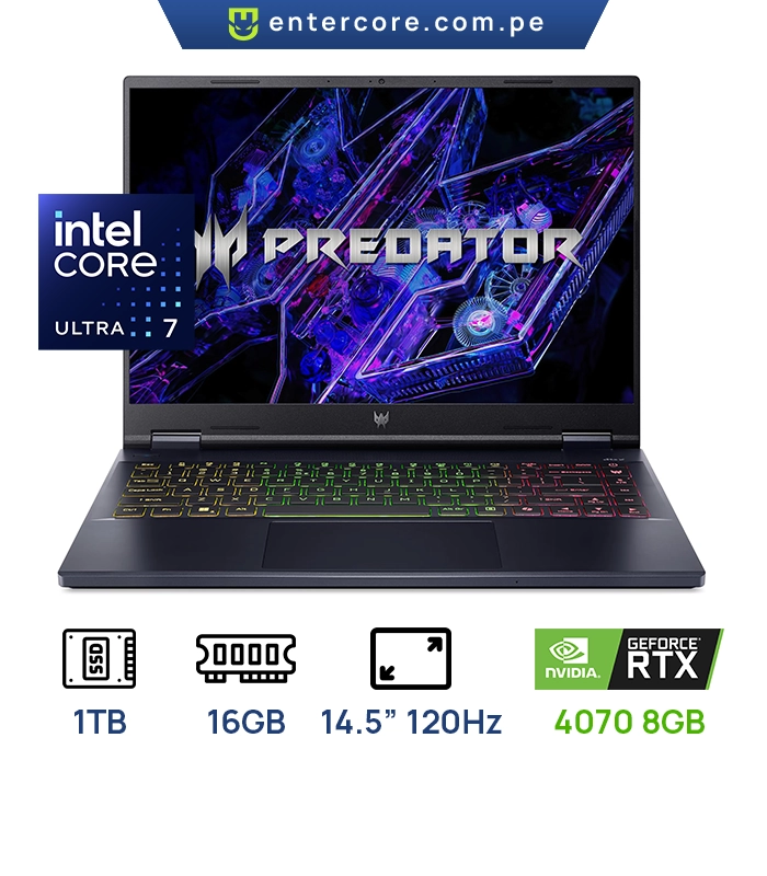 LAPTOP ACER PREDATOR HELIOS NEO 14 PHN14-51-79UB GAMING Core™ Ultra 7 155H 1TB SSD 16GB 14.5″ (2560×1600) 120Hz NVIDIA® RTX 4070 8192MB ABYSSAL BLACK Backlit Keyboard WIN11
