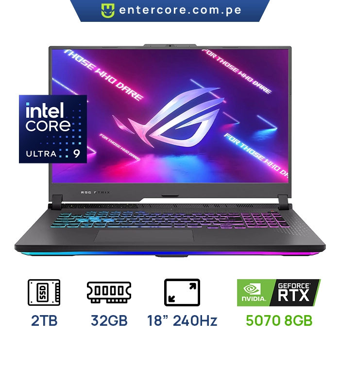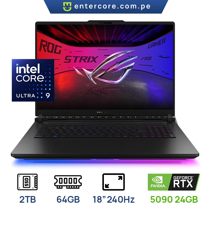 LAPTOP ASUS ROG STRIX G815LP-XS97 INTEL ULTRA 9 SERIE 2 275HX MEMORIA: 32GB DDR5,2TB SSD PANTALLA: 18”2.5K QHD 2560X1600 240Hz NVIDIA GEFORCE RTX 5070 8GB, WIN11