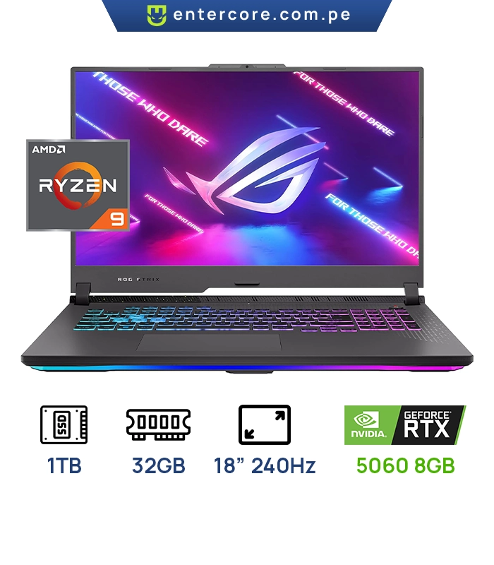 LAPTOP ASUS ROG STRIX G814PM-ES96 AMD RYZEN9 8940HX, 32GB DDR5 DISCO: 1TB SSD PANTALLA: 18” 2.5K 2560X1600 240Hz VIDEO: 8GB GDDR6 NVIDIA GEFORCE RTX 5060 WIN11