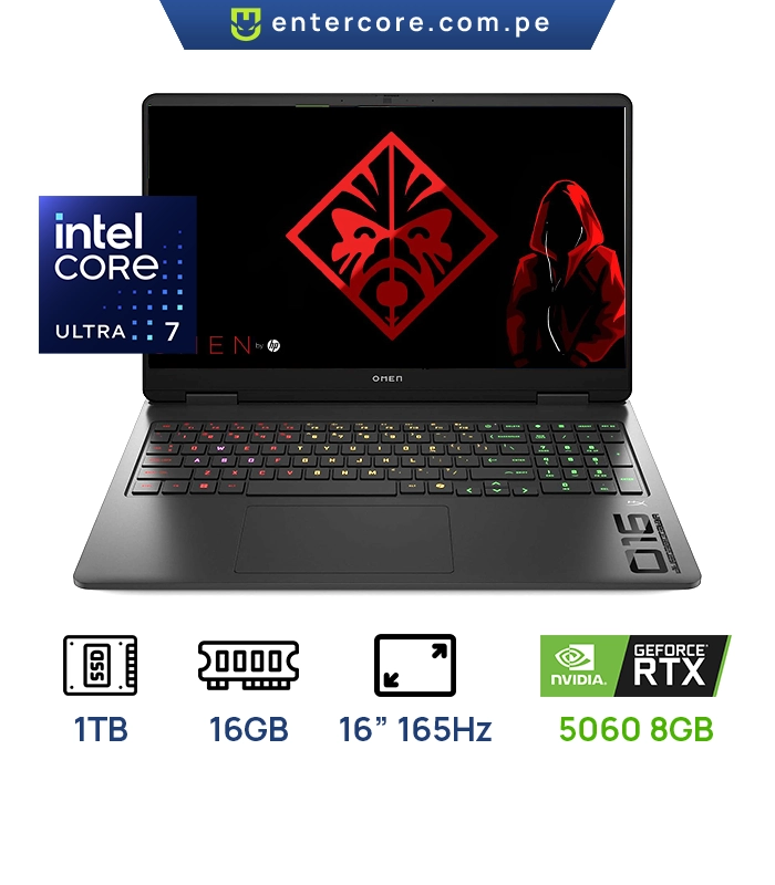 LAPTOP HP OMEN 16-AN0001R INTEL ULTRA 7 SERIE 2255H 16GB RAM,1TB SSD PANTALLA: 16″ 2K (1920X1200) FHD 165Hz NVIDIA GEFORCE RTX5060 8GB WIN11